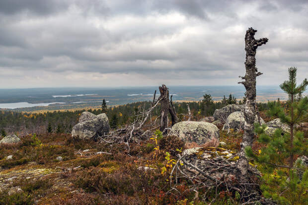 11. А вот и цель нашего фототура - загадочная гора Воттоваара. Плато, на котором расположена гора имеет необычную и сильную энергетику. Необычен и лес на вершине, удивительная форма деревьев которого имеет вполне научное обоснование. Обдуваемая со всех сторон сильными северными ветрами гора, представляет собой несколько жуткое зрелище. Стволы просто не выдерживают подобного постоянного напряжения, изгибаются и ломаются. Из-за постоянных сильных ветров, многие деревья имеют странную форму, часто изломаны и лес представляет собой слегка жутковатое зрелище.