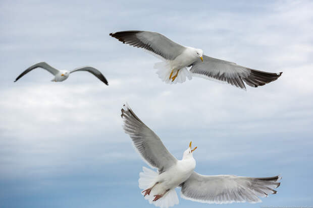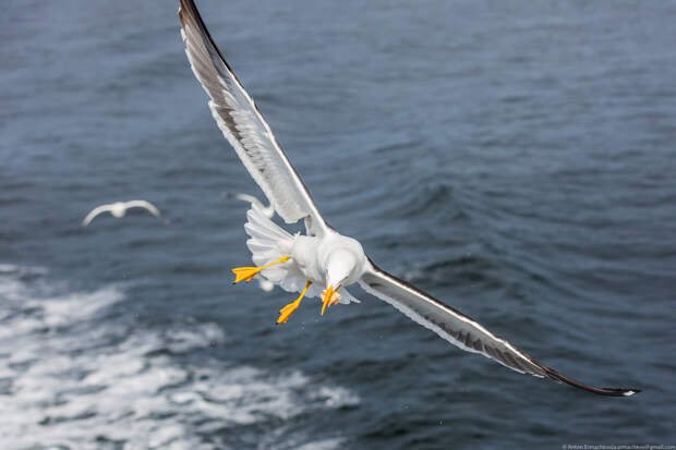 Фото 3. Главное развлечение во время плавания до Соловецких островов - кормление чаек, сопровождающих теплоход во время перехода: