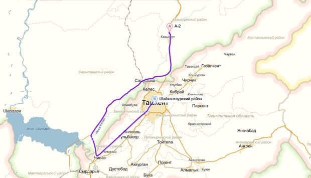 Чтобы попасть в Узбекистан, нам пришлось сделать крюк в 160 км. Прямого автомобильного перехода в Жибек Жолы (рядом с Ташкентом) не оказалось. Переход есть, но только пешеходный. Мы перешли границу в Чиназе и поздно ночью приехали в Ташкент. Очереди из легковых автомобилей на границе не было, однако это не помешало нам потратить около 4 часов на все процедуры. Узбекские погранцы были особенно дотошны.
