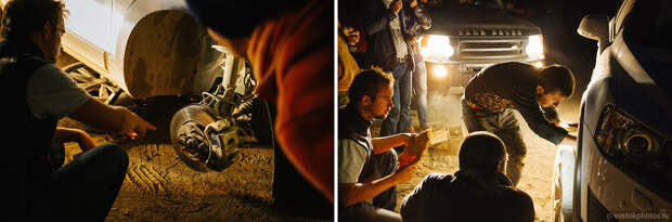 Диагноз установили быстро и точно — разболтался болт крепления стойки стабилизатора. Самый главный специалист приволок большую коробку с различными запчастями, какими-то деталями в масле, гайками, болтами, и вывалил все содержимое прямо на пыльную землю. Нам добавили еще одну шайбу, все как следует закрутили и вернули колесо на место. Стук пропал. Мы отблагодарили мужиков, расплатились и поехали дальше. Ремонт стоил 100 рублей.