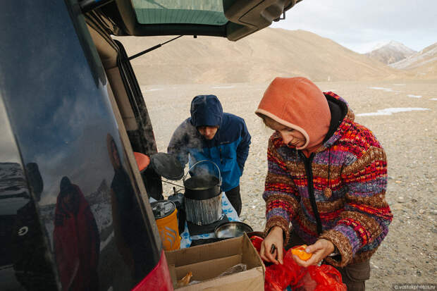 Жизнь в палатках позволяла существенно экономить на бюджете поездки, но отнимала определенное время на сборку и установку лагеря. Ночи были холодными, поэтому каждое утро нам приходилось сушить палатки и спальники. Потом мы собирали все вещи и распихивали добро по автомобилям. На все это уходило время.