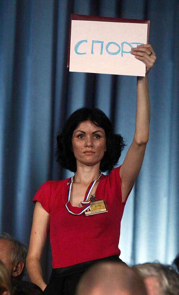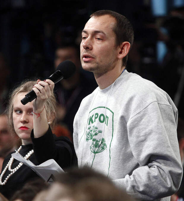 Журналисты начали собираться в Центре международной торговли (ЦМТ) уже часа за три до начала пресс-конференции. Некоторые приехали прямо с вокзала, но большинство хорошенько подготовились: многие женщины нарядились в красные платья, надеясь, что яркое пятно обязательно привлечет внимание президента. Помня прошлогодний опыт, организаторы пресс-конференции по громкой связи просили не поднимать над головой "игрушки, плакаты и другие громоздкие предметы". "Вы мешаете прямому эфиру!" - увещевали они. Часть "амуниции" во избежание эксцессов сотрудники службы безопасности отбирали прямо на входе. Одна девушка так искренне разрыдалась, когда любовно нарисованный ею транспарант отправился на помойку, что фсошники разрешили ей остаться в шлеме танкиста и усадили на одно из привилегированных мест в зале.
