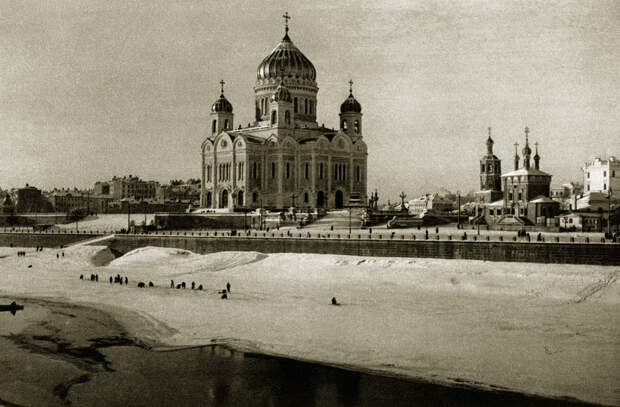 Вид Москвы-реки, Кремля и Храма Христа Спасителя с Большого Москворецкого моста.