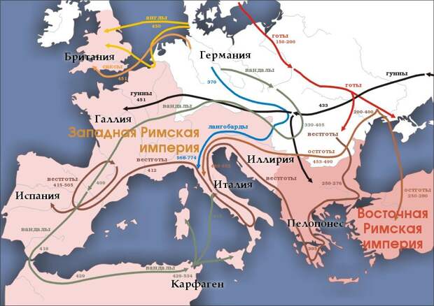 Великое переселение народов, определившее лицо современной Европы, длилось несколько тысячелетий. Сравнительно надёжно изучена часть его, начатая возникновением индоевропейской языковой семьи. Она зародилась примерно шесть тысячелетий назад в горах, ныне поделённых между Арменией, Ираном и Турцией; затем носители первых индоевропейских языков пришли на север Урала, там жили несколько веков, оттуда пошли на юго-восток, перевалили через Гималаи, заняли северную половину нынешних Индии с Пакистаном, там расплодились — и начали волнами выплёскиваться на север и запад, так что уже примерно четыре тысячелетия назад первые индоевропейцы пришли в Европу, а последняя из индоевропейских волн — германская — началась примерно в третьем веке до нашей эры и завершилась примерно в четвёртом веке нашей эры.