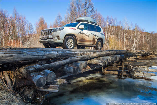 Сегодня мы привыкли видеть эти машины, в основном, на паркете в городском потоке и уже с трудом можем себе представить их в грязи, на лесной дороге, покрытой снежной кашей, или преодолевающими реку вброд. Нет, в телевизионной рекламе мы видим красивые кадры с подобными машинами в самых суровых условиях, но в жизни на них в такие условия ехать, как правило, боятся. Но Land Cruiser, между прочим, далеко не паркетник и на нем можно со всей уверенностью отправлять в путешествие по местам, где с дорогами все плохо. И за два дня в Бурятии мы в этом очень хорошо убедились.
