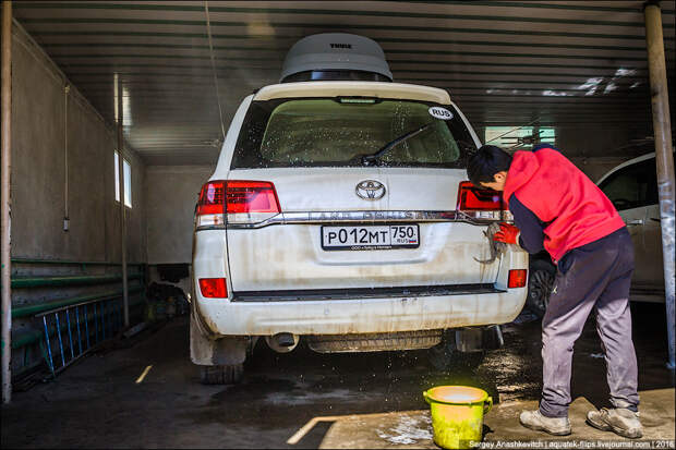 30. Пока работники намывали наши машины, владелец мойки неотрывно наблюдал за процессом. Судя по цене, которую с нас содрали за услугу, за один день хозяин выплатил ипотеку банку за свою автомойку....