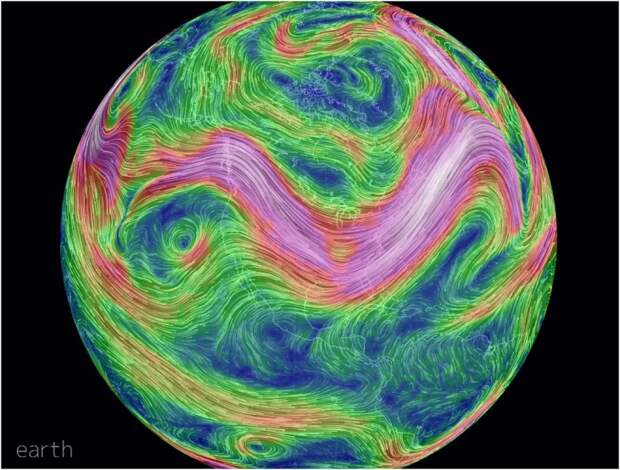Красивая суперкомпьютерная визуализация глобальных погодных условий. Обновляется каждые 3 часа