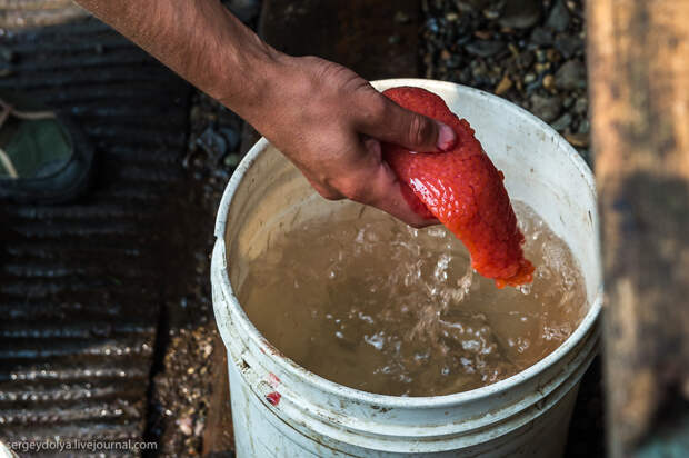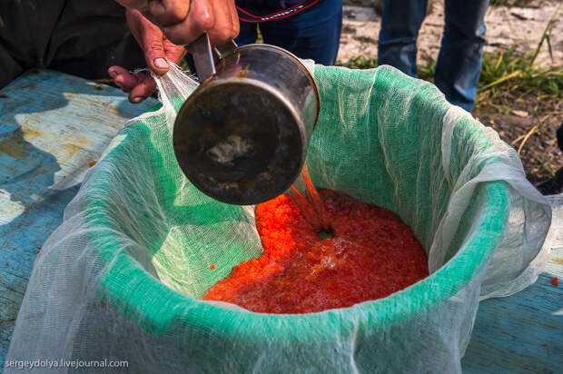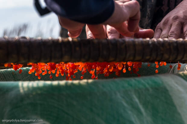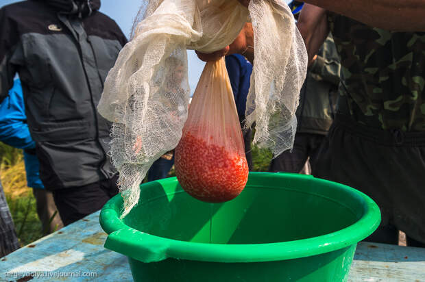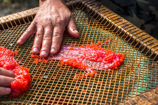Теперь нам надо "отгрохотать" икру: так называется процесс разделения икринок: