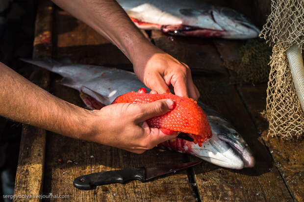 Я никогда не пробовал икру-пятиминутку. Но здесь, в Магадане, мне удалось не только отведать редкий деликатес, но и проследить весь процесс приготовления от начала до конца. Наконец, я могу дать точный ответ что же вкуснее - свежая икра или икра из банки.