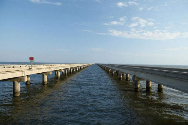 Мост-дамба через озеро Пончартрейн состоит из двух мостов, каждый длиной 38 километров. Один был построен в 1956 году, другой, чуть длиннее своего предшественника, был завершен в 1969 году. И с тех пор мост-дамба держал титул самого длинного моста через водные пространства в мире. Построенный в 2011 году Циндаоский мост через залив в Китае стал угрозой для американского брата, но представители Книги рекордов Гиннесса быстро придумали новую категорию, чтобы спасти США от международного конфуза.