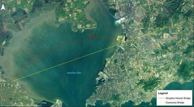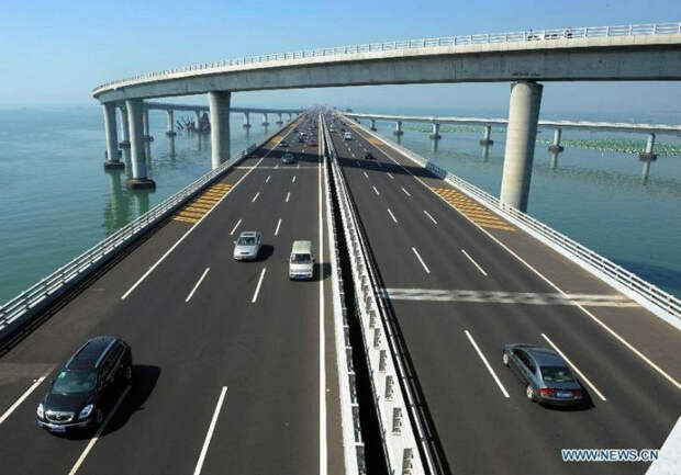 Циндаоский мост через залив, строительство которого стоило 2,3 миллиарда долларов, имеет длину 41,5 километра, то есть он более чем на три километра превосходит американский мост. Но представители моста-дамбы через Пончартрейн утверждают, что такая длина достигнута за счет кривой моста. На самом деле фактическое расстояние, пересекаемое мостом, около 25 километров.