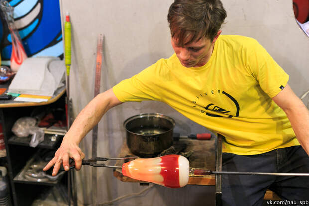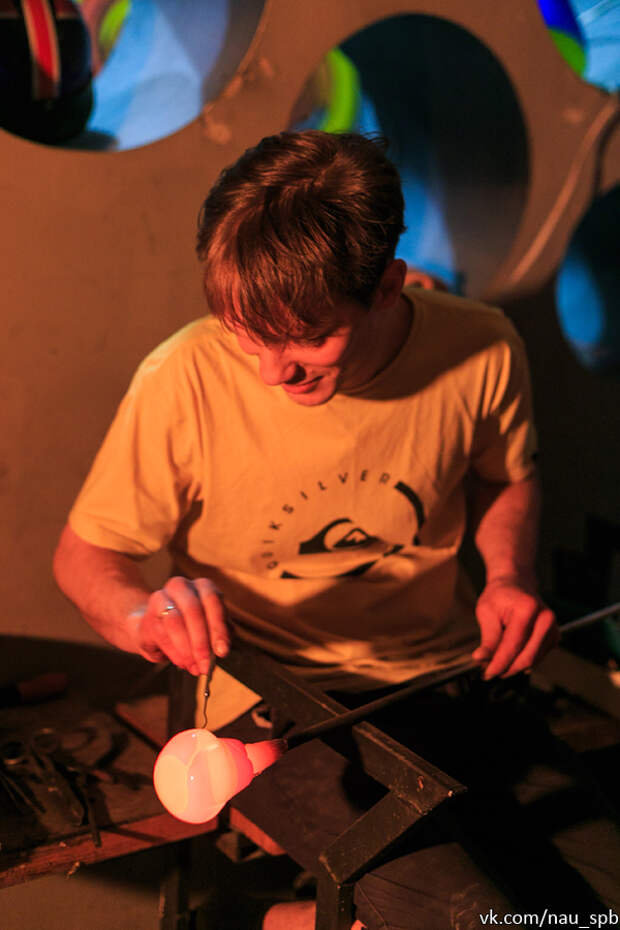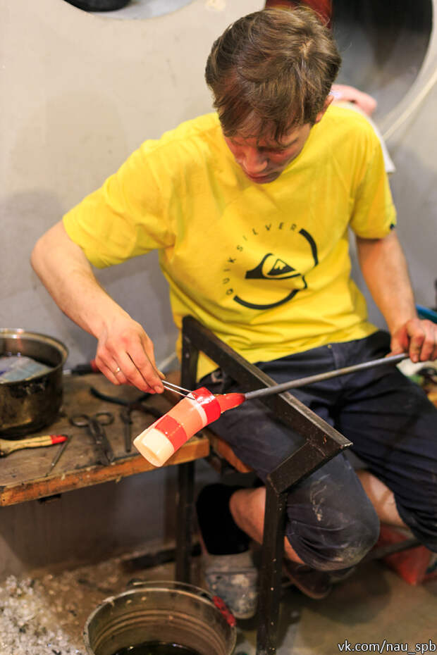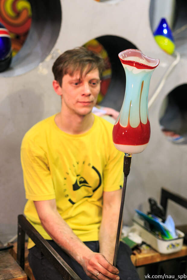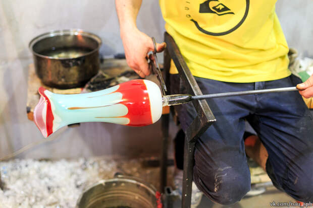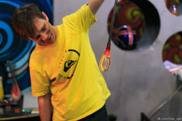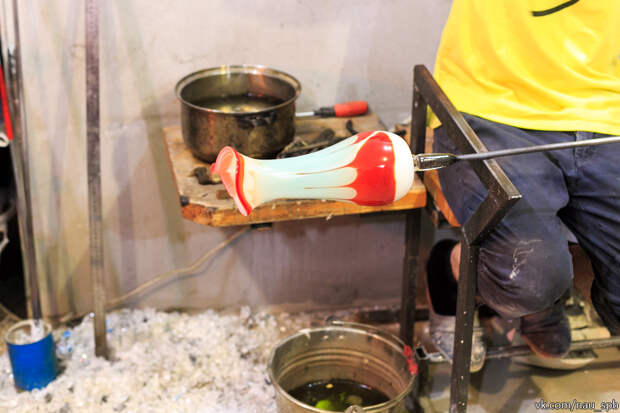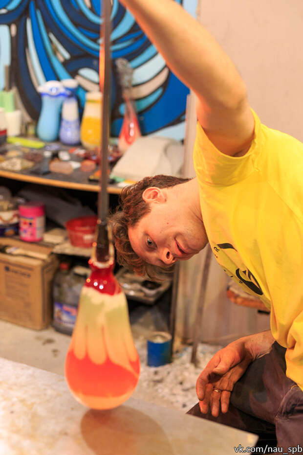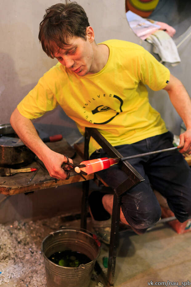 25. И вновь формовка. В целом, процесс понятен и просто - дуй, крути, придавай форму, остужай. Но при этом всё это очень сложно, и требует внимательности и опыта, который получаешь, совершая ошибки и добиваясь результатов. Как и во всем, впрочем. Творческая и интересная работа, не зря Егор перестал был офисным планктоном и стал работать руками, круто же.