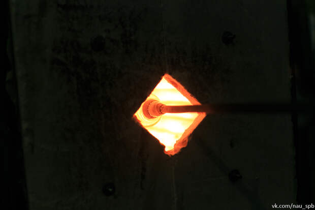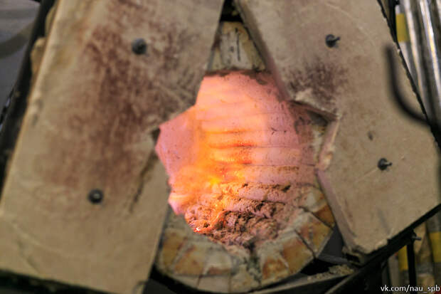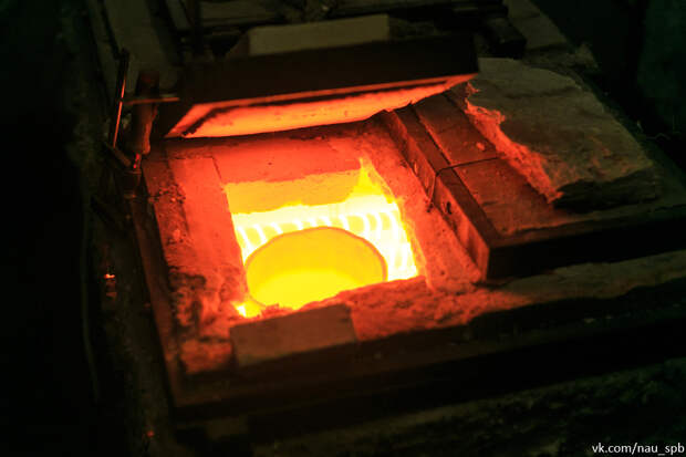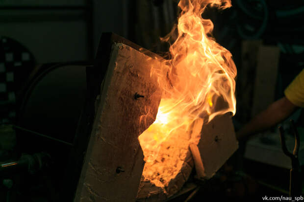 6. Температура там приличная, печь используется для подогрева изделия во время работы. Внутрь не залезть, жарко же, но Егор рассказал, что они с друзьям засунули туда экшн-камеру, обмотав ее в охлаждающие тряпки, и сделали несколько крутых фотографий. Огонь же!