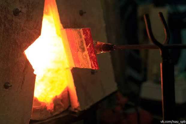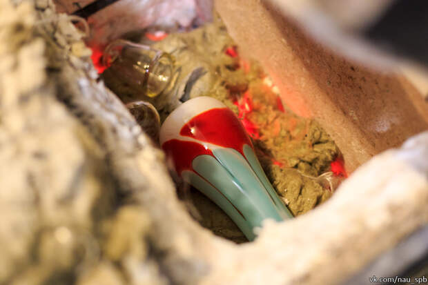 26. Здесь изделие уже с дополнительным слоем стекла, что мы недавно нанесли, отправляется вновь в печь.