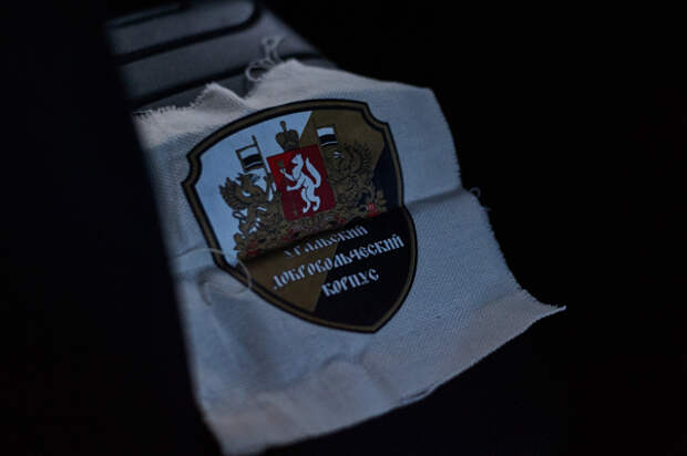 — Батальон «Хулиганы». Мы — разведывательно-диверсионная группа (протягивает нашивку с надписью: «Уральский добровольческий корпус»).