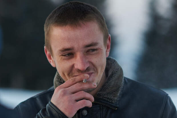 Беседовали, наверное, минут 40. Почти все время дул пронизывающий ветер, а Евгений, одетый в короткую кожаную куртку, из-под которой виднелась только футболка, будто совсем не чувствовал холода. Шапки тоже не надевал. Только одну за одной курил сигареты и буквально каждую фразу заканчивал частицей «на».